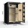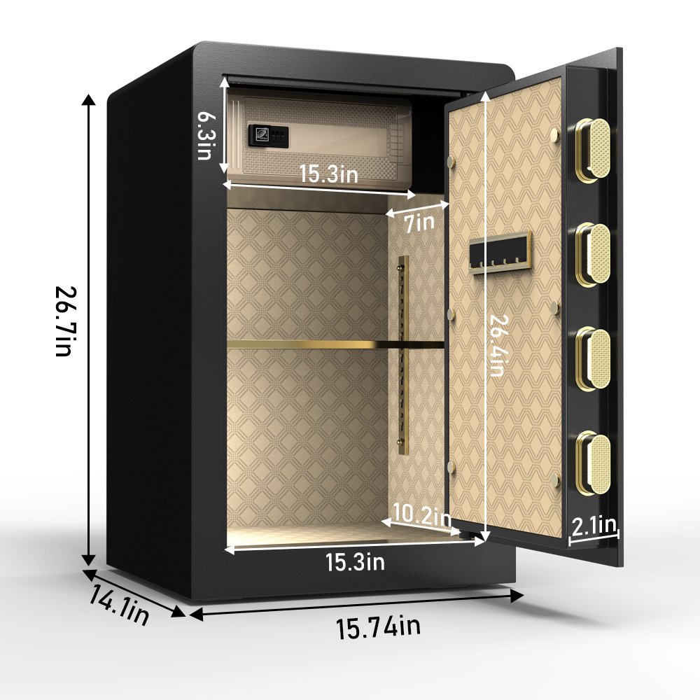 [Super Large Inner Space]2.4 cubic feet safe; the large inner space allows you to keep all of your valuables safe such as cash; jewelry; laptop; guns; documents; and so on. The inside locking box adds one more protection for your privacy. The inside of the safe is covered with leather to prevent wear and tear of valuables.